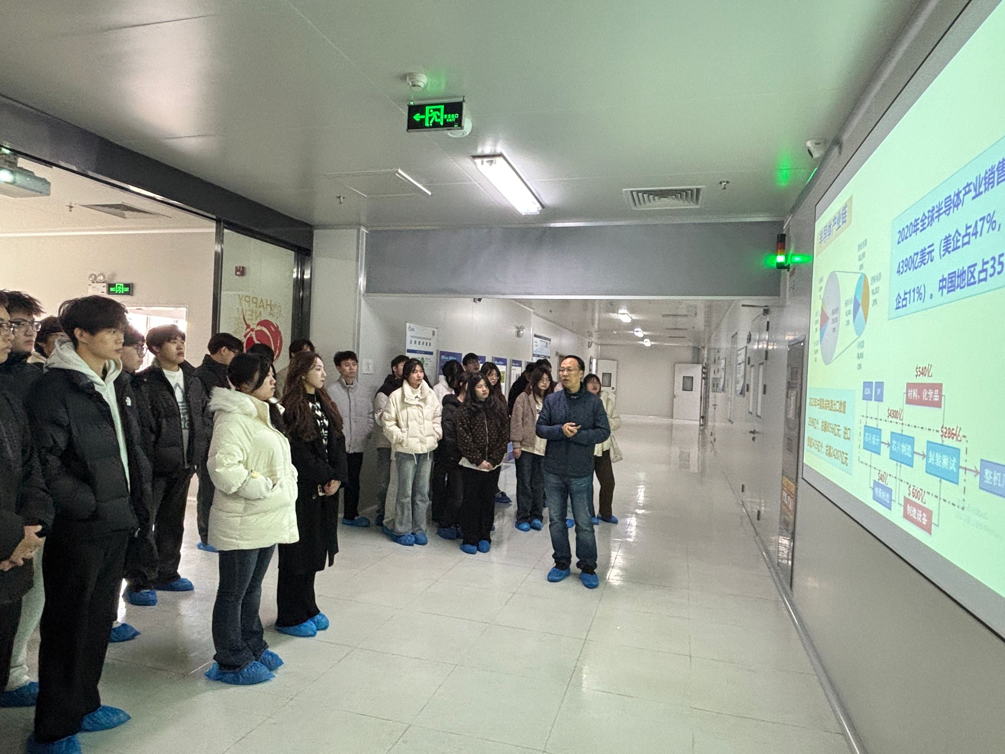 12月16日上午,数微学院组织学生前往中科纳米张家港化合物半导体研究所开展学习实践活动。研究所执行所长朱杰为同学们作了“化合物半导体技术与应用”专题讲座,系统讲解了半导体技术从硅基时代到宽禁带材料的发展脉络,重点剖析了氮化镓、碳化硅等化合物半导体在5G通信、新能源等领域的应用前景。讲座后,师生们深入研究所实验室进行实地参观,朱杰现场讲解了材料制备、器件加工等关键工艺流程与科研设备。