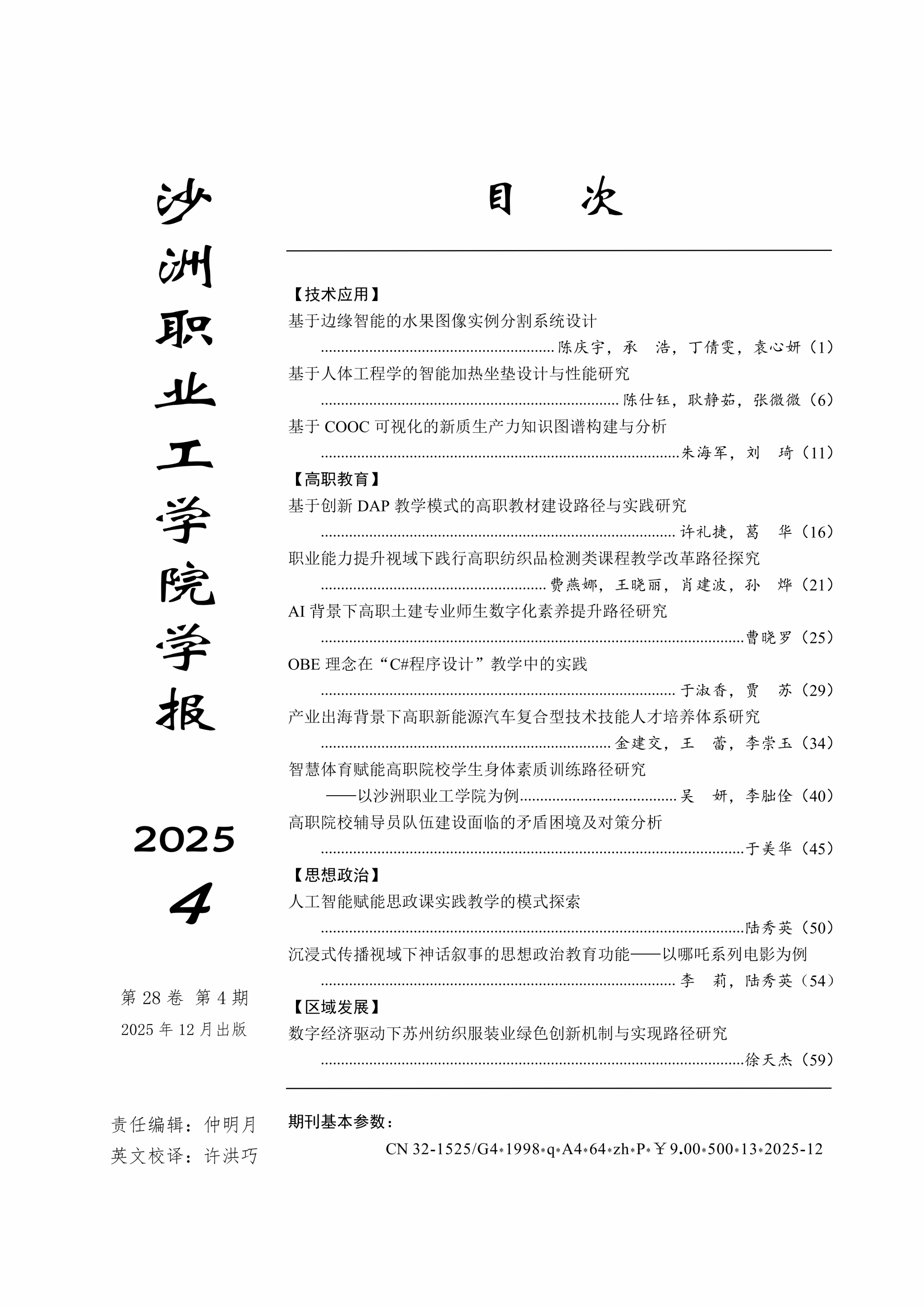 《沙洲职业工学院学报》2025年第28卷4期目次